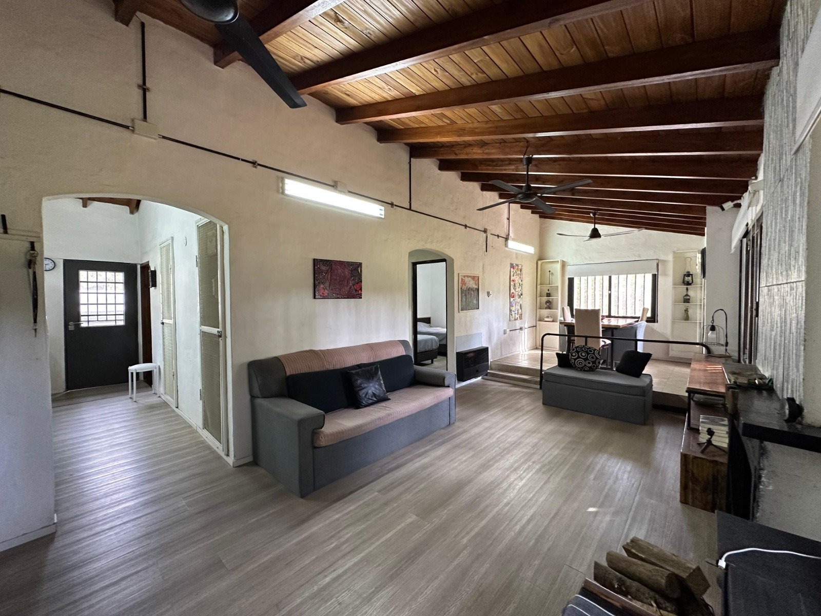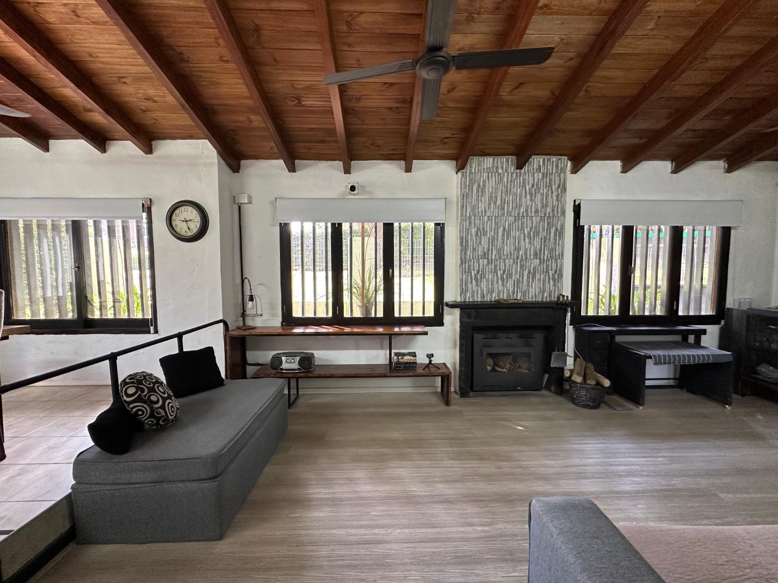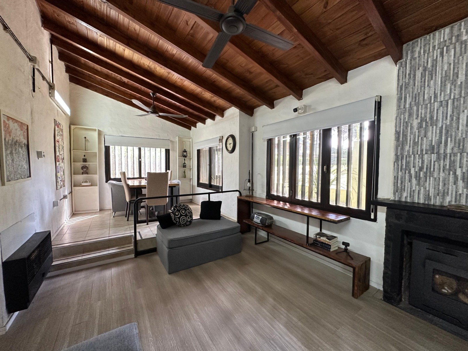 *Living comedor con hogar y doble altura