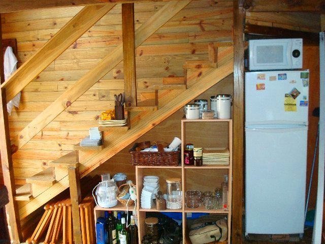 *Mesada con microondas y pequeña heladera