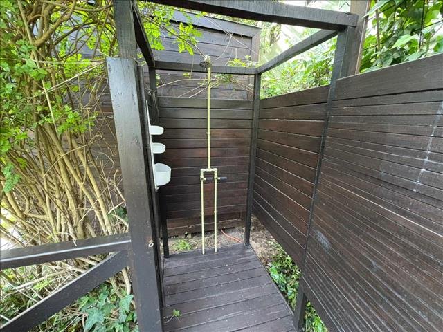 *Segundo deck con parrilla y horno de barro bajo la arboleda. Ducha de playa